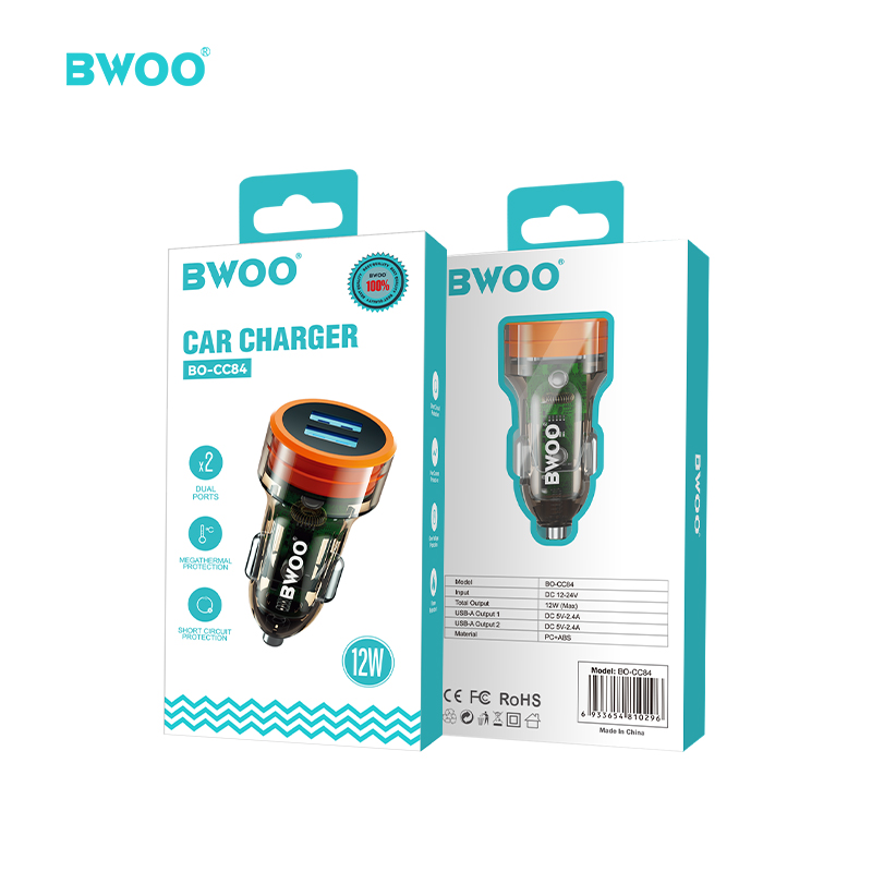BO-CC84 Cargador de teléfono para coche con salida dual USB de 12 W cantidad