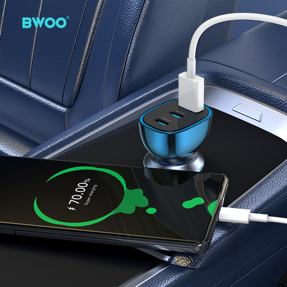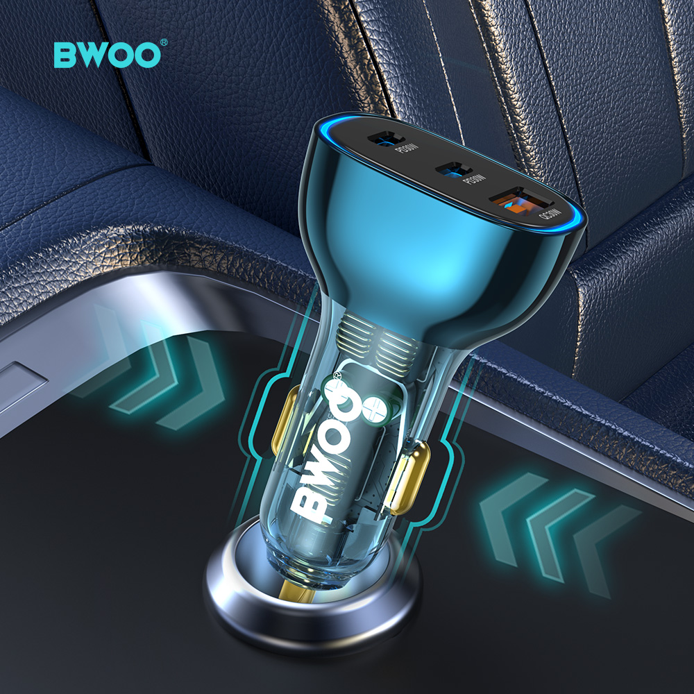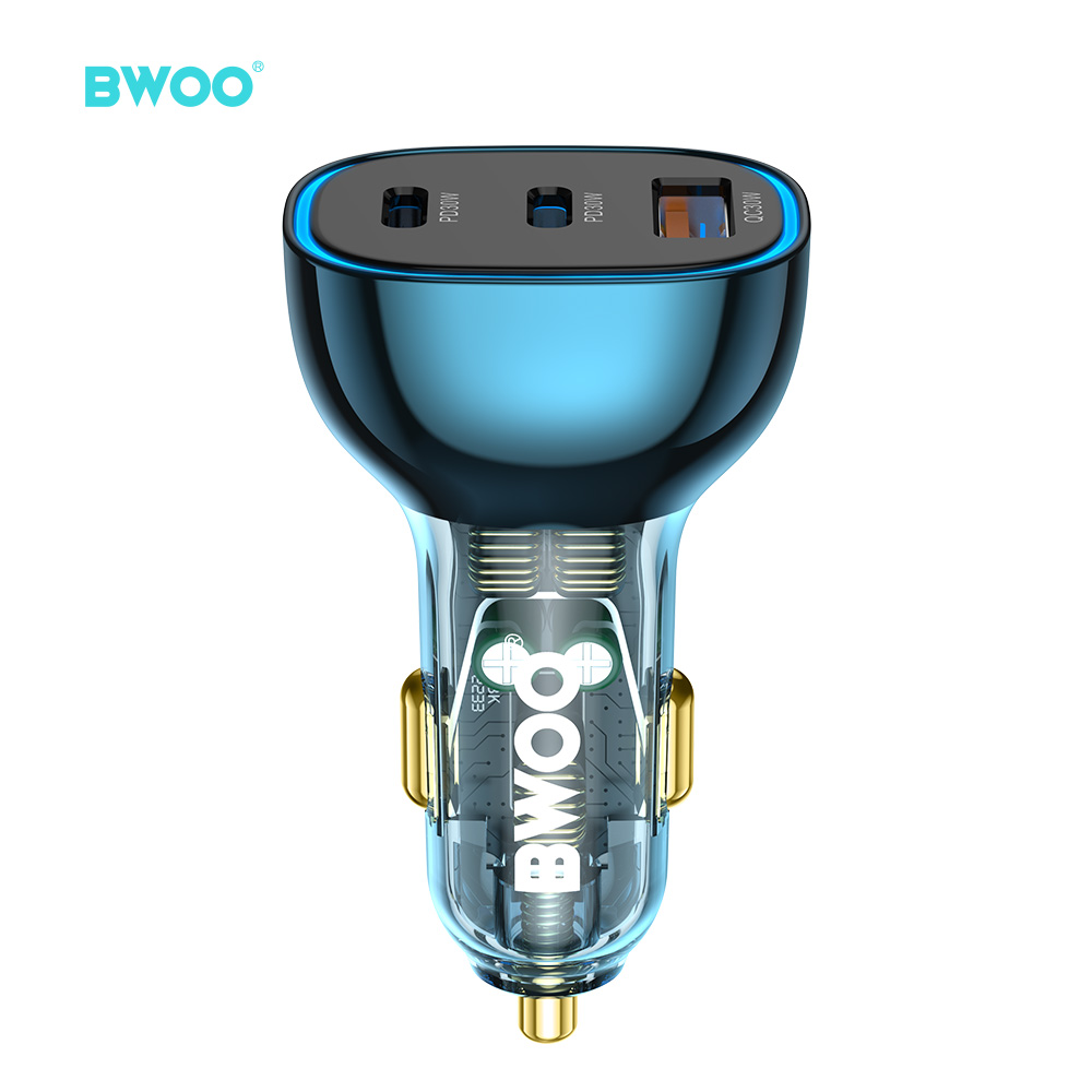 InicioBwooCargador de AutoBO-CC99 Cargador de coche USB-C de 90W super rápido, con 3 puertos transparente y azul
