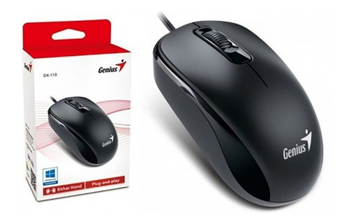 Mouse GENIUS DX110, color negro, sensor optico de 1000 DPI.