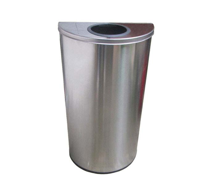 Papelera media luna con orificio circular superior, tiene un acabado satinado. Resistente a la Corrosión y humedad.